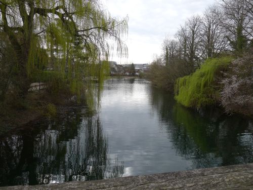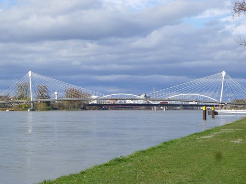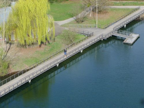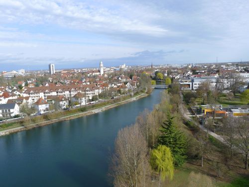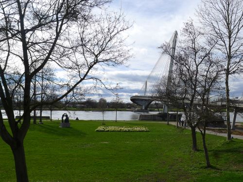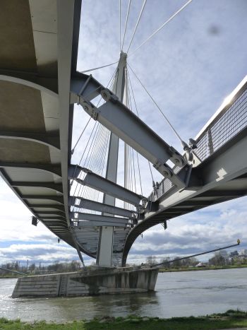 Von hier aus sieht man auch die Trambrücke, die Kehl mit Straßburg verbindet.
