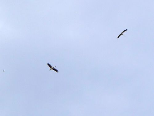 Die Störche machen hoch oben ihre Spielchen, aber Carl darf nicht, er muss angeleint bleiben.
