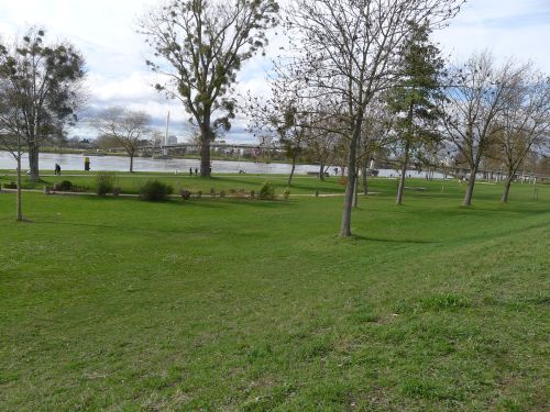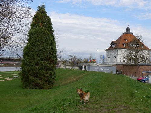 Wir wissen aus der Platzbeschreibung, dass es nicht weit zur Rheinpromenade ist, und stiefeln los.