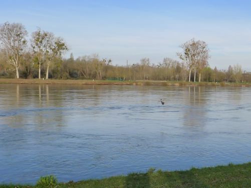 Hier unten am Rhein ists genauso schön wie gestern, und wir laufen deshalb ein ganzes Stück auf dem Damm, bis zur Villa Schmidt. Dabei begleiten uns hunderte von Erdbienen ein ganzes Stück. Auch sie haben mitgekriegt, dass der Frühling bald anfängt. Also nix wie raus an die frische Luft....