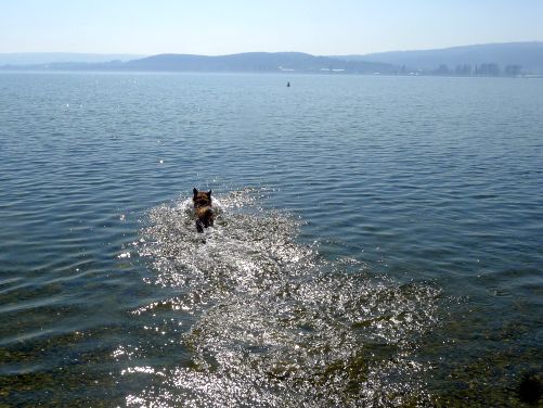 So gefällts uns besser, und die vielen Womos fahren eh bald weg, denn das Wochenende ist vorbei und die Schweizer müssen wieder heim.