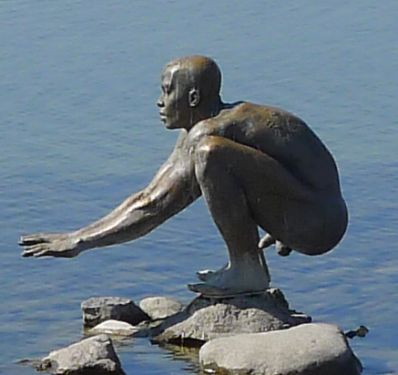 Die Skulptur dient übrigens als Wasserstandsanzeige. Normalerweise sitzt er im Wasser. Aber heute hatte ich wohl Glück, dass ich ihn in seiner ganzen Pracht knipsen konnte.