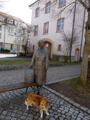 Und weil wir gerade hier sind, schauen wir auch mal kurz in die Stadt. Heute ist Markt, aber da dürfen wir mit Carl nicht hin. Hunde und Fahrräder verboten.