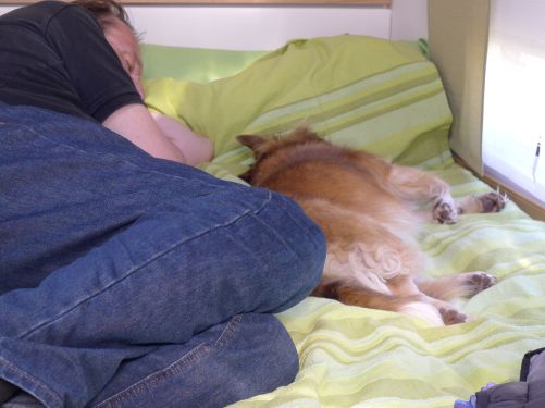 ...schlafen, Hundegassi, stricken, kreuzworträtseln, lesen, und Sonnenbrand pflegen.