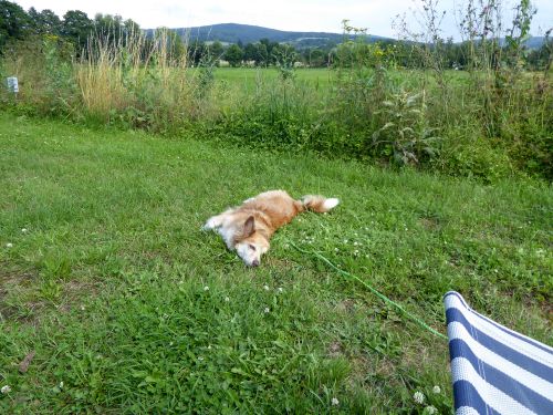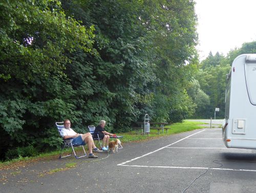 Wir haben lange überlegt wo wir hinfahren. Entweder gibts auf den Plätzen keinen Schatten, oder keine schönen ebenen Wege zum Gassigehen, oder es ist zuviel Trubel. Und weiter weg wollen wir nicht, denn wir warten ja immernoch auf den Anruf unsres Dachdeckers, der seit Anfang Januar kommen will.