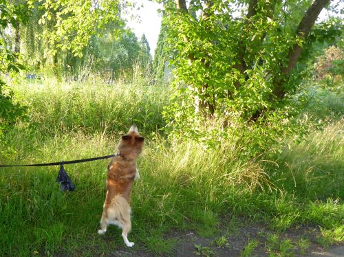 Als würde es nicht reichen für heute.... jetzt fängt der Dödel an Tauben jagen zu wollen. Nixda, wir klettern nicht auf Bäume.