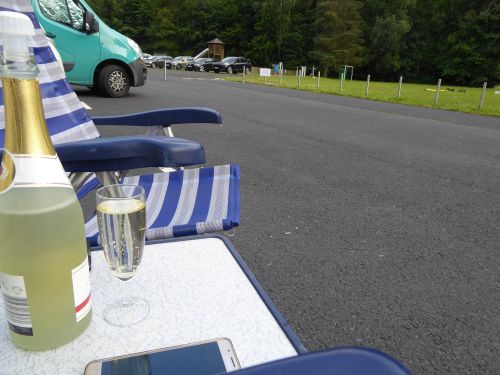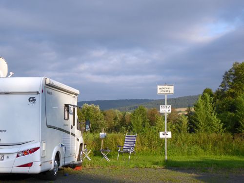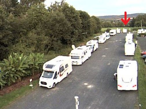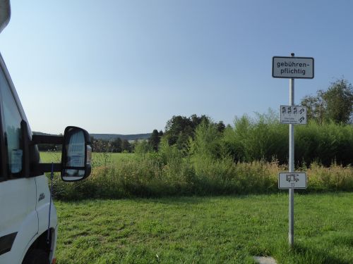 Und dann wird unser anvisierter Platz frei. Jetzt stehen wir wieder mit Aussicht auf den Spessart und sind zufrieden, denn all die Nachbarn hinter uns sehen wir nicht.