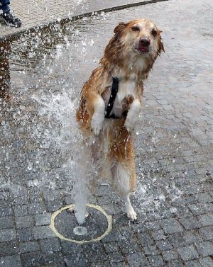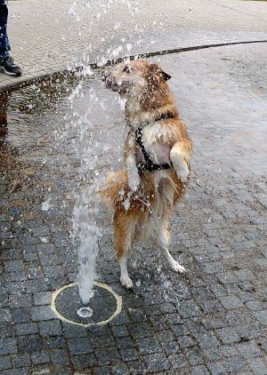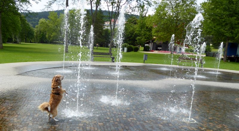 Jetzt haben wir 3 Schönheiten geknipst, und weil heute so gut wie keine Kurgäste im Park sind, heißt es für Carl "Leinen los....." und die Jagd auf die Fontänen beginnt.