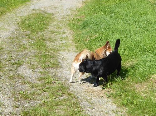 Naja, einen Platz fanden wir, aber Gassigehen war dort sehr anstrengend, weils ziemlich bergauf ging, aber Carl kam voll auf seine Kosten. Er traf einen einheimischen Kumpel, der sich hier auskennt.