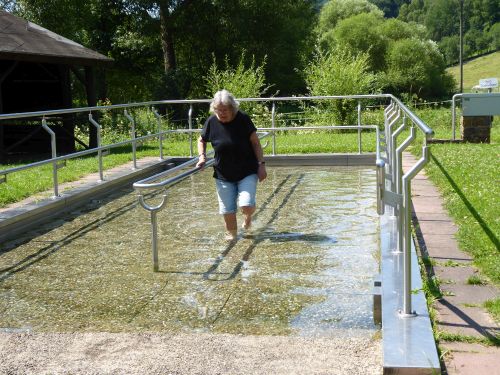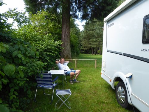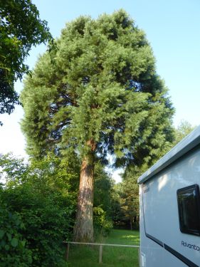 Wir urlauben - wie letztesmal auch - im Schatten des wunderschönen Mammutbaumes, und zum Tagesabschluss kneippen diesmal wir, und Carl muss im Womo bleiben.