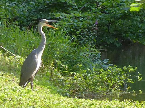 Beim Spaziergang zum Gondelteich erwartet uns wie üblich der Reiher.
