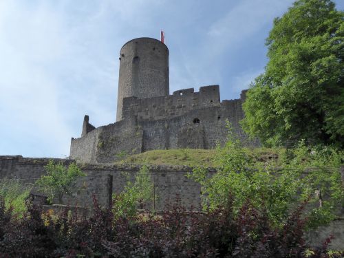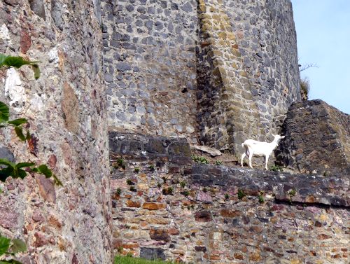 Auch hier gibts - wie gestern auf der Ronneburg - einen tierischen Wächter. Das Innere der Burgruine blieb uns aber leider verwehrt. Irgendwie versteht man die Welt nicht mehr, denn die Inzidenz liegt bei 6, alles wird geöffnet, in Fußballstadien, Kneipen und weiß der Teufel wo sitzen die Leute dicht beieinander, aber hier unter freiem Himmel braucht man eine vorherige Anmeldung, und es werden nur paar Leute mit Mundschutz reingelassen.
