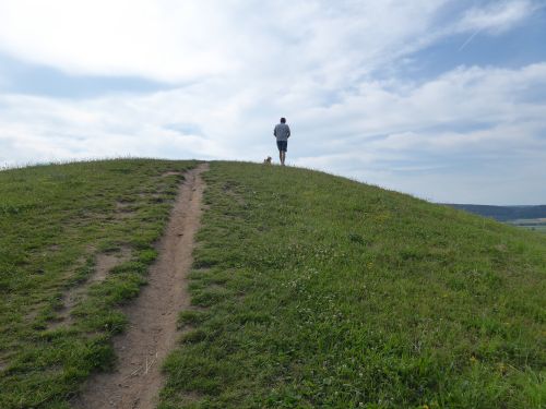 Und durch schmale Sträßchen kämpfen wir uns wieder aus der Ortschaft raus und gehen hinter dem Sportgelände noch paar Schritte durchs Feld.