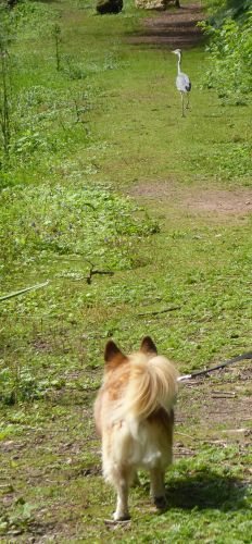 Und als wir nach dem Frühstück an den See gehen, wartet der Reiher schon auf uns. Und Frau Nilgans leistet ihm Gesellschaft.