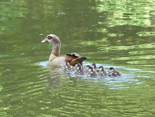die Schildkröte zeigt sich auch mal, und die Nilgans zeigt ihrer Brut die Welt, hat aber keinen Mann, der sie beschützt.