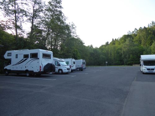 Wir waren mal kurz daheim und Peter hat den Ablauf des Grauwassertanks wieder gangbar gemacht, und nun sind wir kurz vor Einbruch der Dunkelheit in Horbach angekommen.