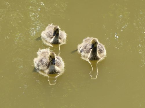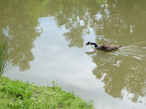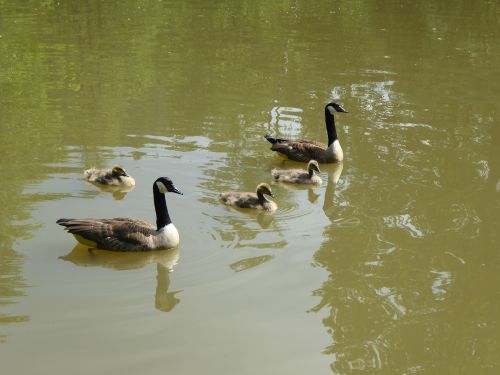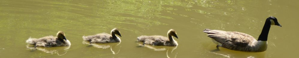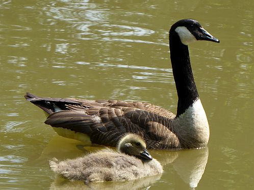Am See finden wir eine freie Bank und schauen der Kanadagansfamilie eine Weile