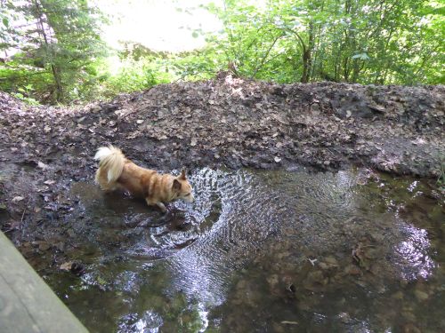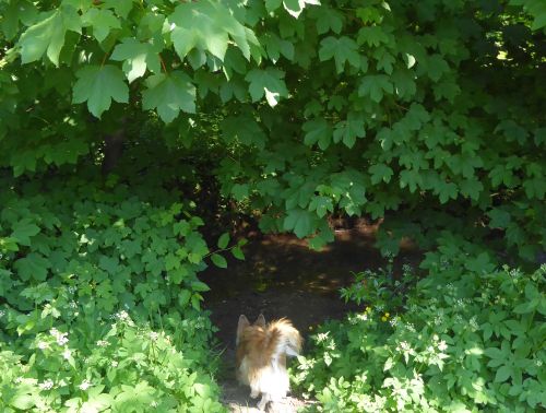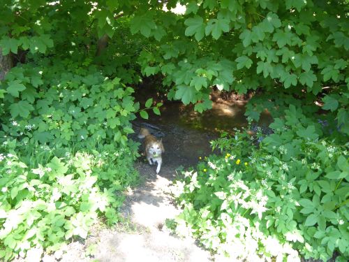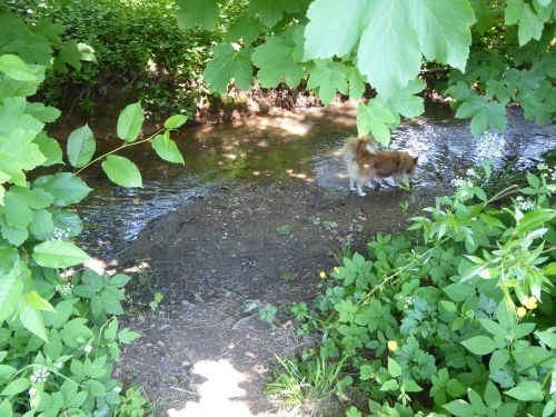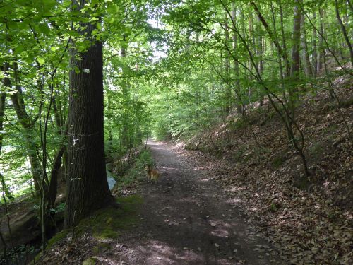 Für mich ists Wasser leider zu flach, ich muss leiden. Deshalb machen wir uns zu einem Spaziergang auf den Weg durch den kühlen Wald.
