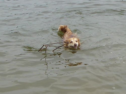 Wir finden unterwegs für Carl eine schöne Badestelle, die leider wie fast jede Bucht, mit den Hinterlassenschaften anderer zugesaut ist.