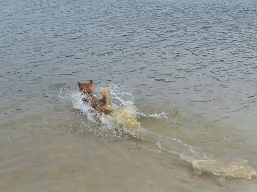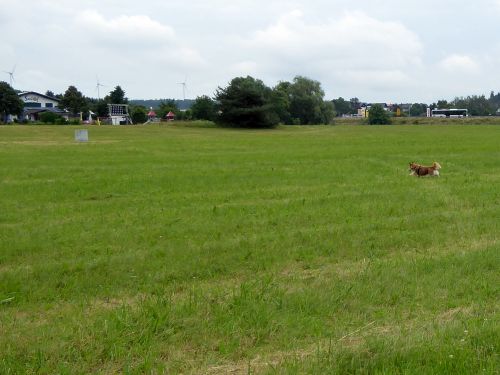 Auf dem Weg zur Vorstaumauer darf Carl endlich mal springen. Gemähte Wiesen gibts leider noch nicht überall, und unser Butzel ist glücklich.