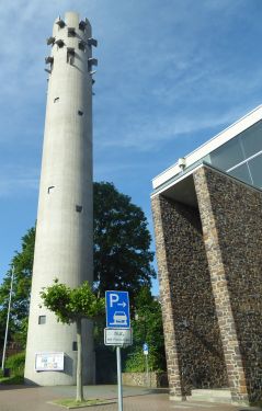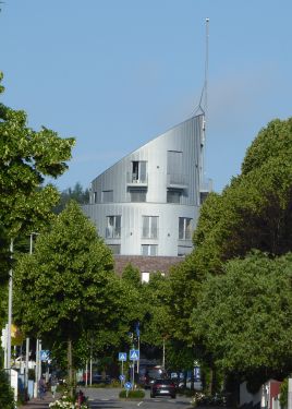Das erste ist ein katholischer Kirchturm, das andere scheint ein Wohnhaus zu sein.