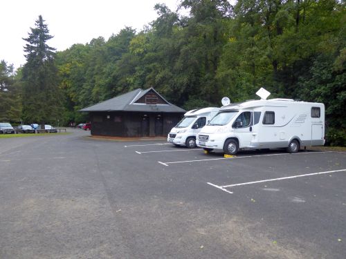 Das Morgengassi fällt heute recht kurz aus, denn es regnet. Und weil wir hier nicht nur rumsitzen wollen, machen wir einen Ausflug. Erst mal nach Bad Soden-Salmünster, und dort gucken wir, was der neue Stellplatz macht. Fotografiert hab ich ihn nicht, weils wenig zu sehen gibt. Die Erdarbeiten sind abgeschlossen, Randsteine gesetzt, und alles geschottert. Es dauert also noch.