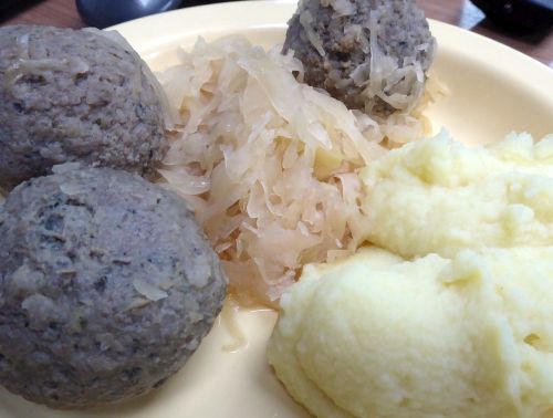 Zum Mittagessen gibts Sauerkraut und Leberknödel.