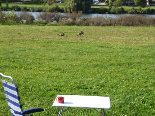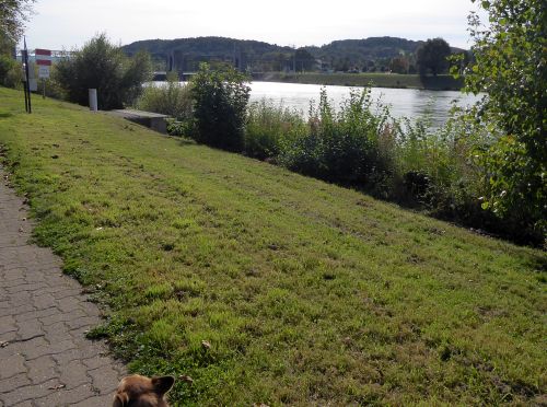 Der Blick auf den Main ist unverbaubar und Gassiwege gibts auch. Peter schont sich noch, während ich mit Carl kleine Spaziergänge mache.