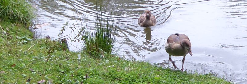 Die neuen Gänse sind nun auch schon groß und sehr zutraulich. Sie kommen direkt bei mir aus dem Wasser und und lassen sich knipsen.