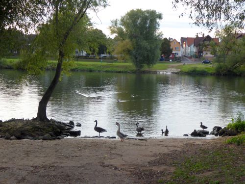 Und auch hier gibts ausgewilderte Haustiere am Main wie in Klingenberg. Dort schwamm eine silbergraue Pommernente, und hier läuft eine Höckergans rum.