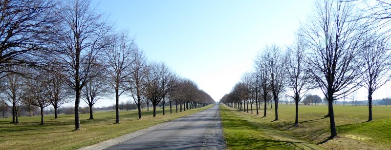 Der Platz liegt direkt an dieser Allee und man hat rundherum Aussicht aufs Grün.