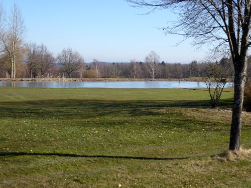 Und direkt nebendran ist ein netter See, und auch gegenüber noch einer, aber zum Gassigehen muss man am Restaurant vorbei und irgendwie raus hier, denn überall ist ja "Betreten verboten". Das ist nix für uns. Schade.