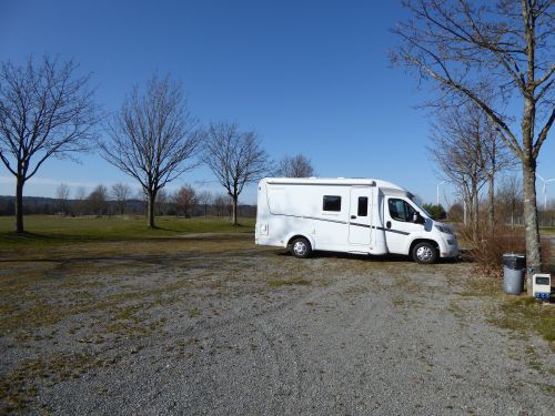 Und dann packen wir, weil wir uns den Stellplatz am Golfplatz Gut Sansenhof bei