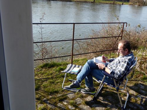 Nun stehen wir in Klingenberg auf unserm Eckplatz direkt am Wasser, erholen uns vom hausgemachten Stress und genießen den Tag.