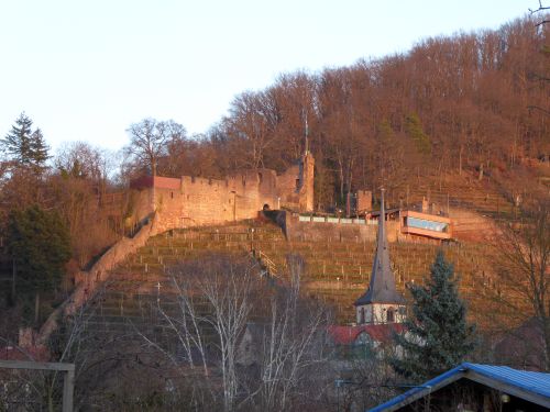 Gegen später wirds dann doch zu frisch draußen, aber ich geh nochmal schnell mit Carl bis zur Brücke, die Clingenburg in der Abendsonne knipsen.