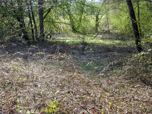 Suchbild........ Auf dem Weg zum Kurpark stand plötzlich das Reh im Gestrüpp. Und es war nicht alleine, sie waren zu dritt. Wahrscheinlich die Jungtiere, die wir letztes Jahr auf der Wiese beobachten konnten.