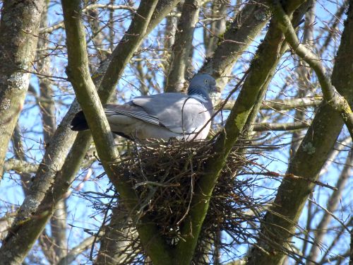 Scheinbar haben alle Tiere gerade Frühlingsgefühle, denn einen Baum weiter stand die Taube wartend im Nest,