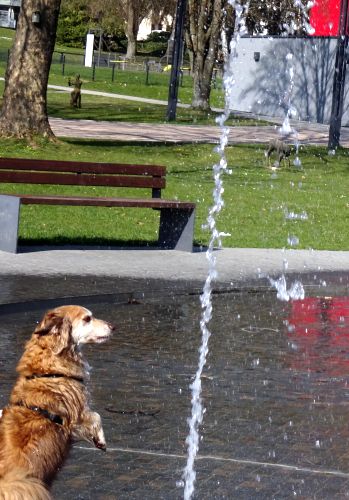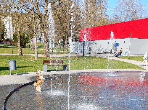 Damit Carl auch was vom Frühling hat, haben wir ihn im Kurpark dann mal wieder auf die hüpfenden Fontänen losgelassen.
