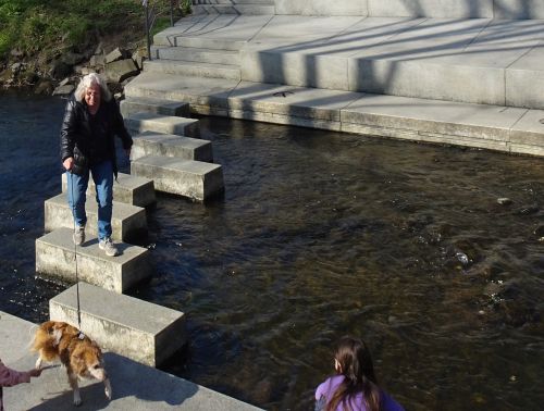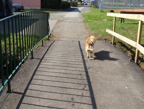 Heute gibts aber keine Bilderserie "über sieben Brücken musst du gehn", denn unser kleiner Flohsack hat einen verfaulten Maulwurf gefressen und muss nun dauernd mal ins Wasser, um sich und sein dreckiges Maul zu säubern. Da bleibt keine Zeit für lusdische Bilder.