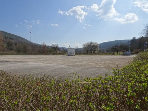 Soden-Salmünster, nach dem Stellplatz schauen. So langsam müsste er fertig sein.