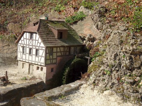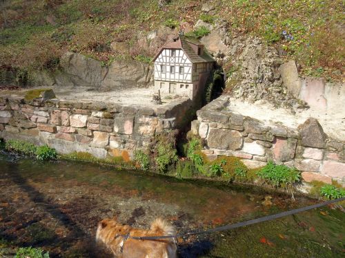schön sauber, kein Laub liegt rum, aber das Mühlrad ist stark vermoost, dreht