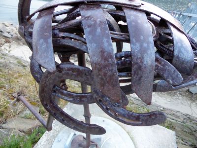 Blick nach links, da passt der Reiher auf. Er trägt das Glück in Form von Hufeisen im Bauch.