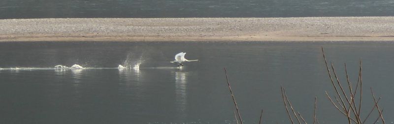Und der Schwan startet durch und beginnt aktiv den Tag.