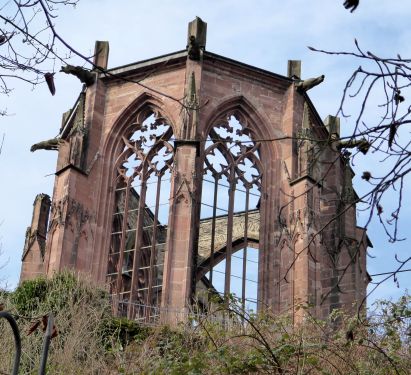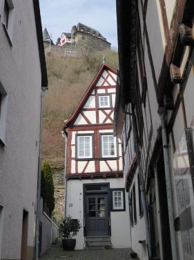 Nochmal ein Vorbote des Frühlings, und Blick auf die auf dem Berg oben stehende Ruine der Werner-Kapelle. Die Treppen dort hoch schaff ich leider nicht mehr.