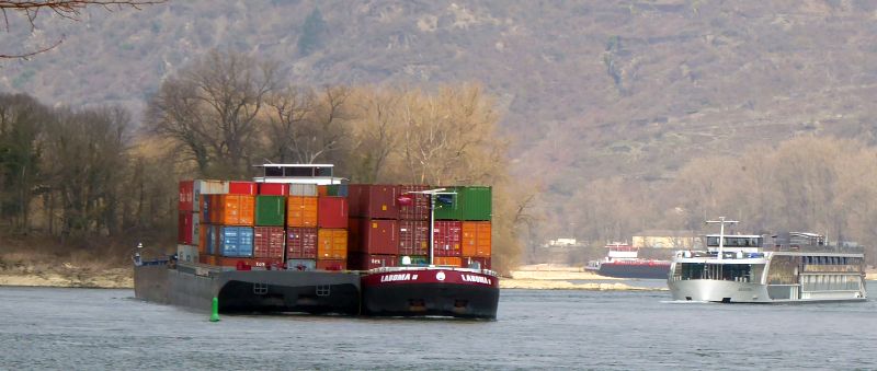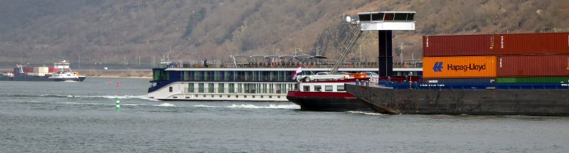Dabei geht in der engen Fahrrinne ein Wettrennen los, denn das Hotelschiff ist schneller und will vorbei.