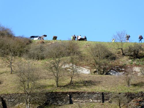 Rechts oben neben dem Turm sieht man Wanderer und Ausflügler rasten. Die haben eine super Aussicht.