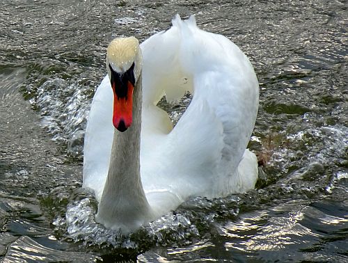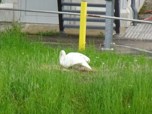 Nach ungefähr einer halben Stunde gehts hier nun endlich weiter. Frau Schwan - links im Bild - hat sich zwischenzeitlich mal umgedreht und ihr Lager gerichtet.