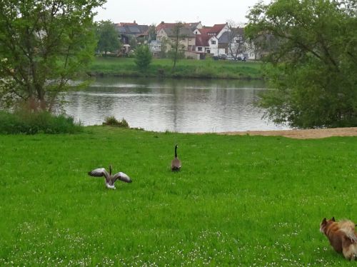 und die Gänse, die uns freudig schnatternd empfangen, bevor Carl seinerseits zu heftig in die Begrüßung einstimmt.