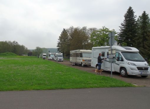 Paar Stunden später ist unsre Arbeit daheim getan, und wir sind wieder unterwegs. Eigentlich wollten wir nach Rothenbuch im Spessart, aber der Platz dort ist öde, außerhalb, zu teuer, und die Wege bergauf-bergab, also nix für mich. Die Wahl fällt nun wieder auf