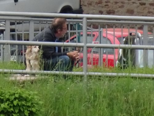 Mit guten Augen oder mit nem Tele kann man sie unterhalb des hellen Kastenwagens am Parkplatz sehen.